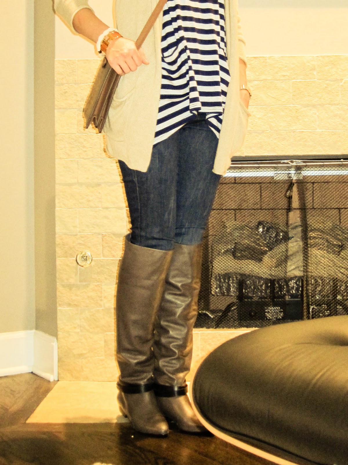 5/48 by Saks dress, sterling silver evening bag my mom got me in Thailand (similar one here), Francesca's crystal hoop earrings, double strand pearl bracelet that my mother-in-law made for my wedding, Stuart Weitzman sandals